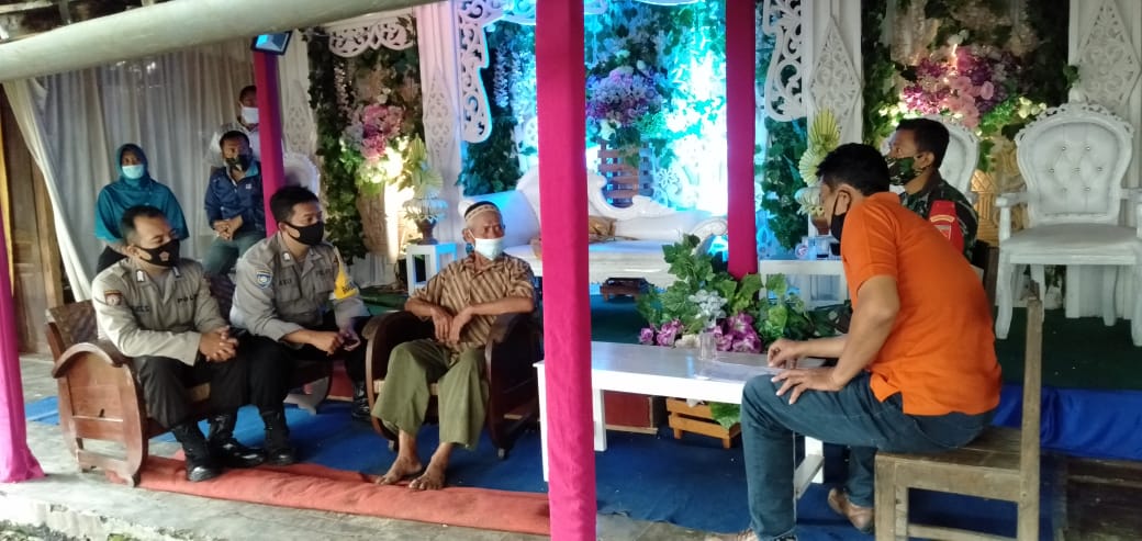 “Kehadiran kami untuk mensosialisasikan tentang surat edaran yang baru dari satuan tugas Covid-19 tingkat Kabupaten Boyolali mengenai pelaksanaan hajatan, yang sesuai dengan Nomor : 180/1831/5.5/2020 tanggal 06 November 2020, antara lain pada hajatan nanti tamu undangan tidak boleh berhenti ditempat, harus berjalan tamu tidak ada sesi foto bersama dan makan ditempat, dan perhelatan hajatan pernikahan harus digelar pada siang hari serta menerapkan aturan protokol kesehatan yang ketat seperti sebelum tamu dating, dicek suhu badannya dengan menggunakan Thermo Gun, mencuci tangan sebelum dan sesudah masuk keruangan, menjaga jarak dan memakai masker”. Ungkap Sertu Sugiyono.