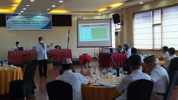 Kepala Loka POM Manggarai Barat A R Nuryadin, S.TP menjadi moderator. Materi FGD antara lain pembahasan Nota Kesepakatan Antara Badan POM dengan Pemda Manggarai Barat tentang Pengawasan Obat dan Makanan Terpadu. Kemudian Peningkatan Koordinasi Pengawasan Obat dan Makanan di Kabupaten Manggarai Barat.
