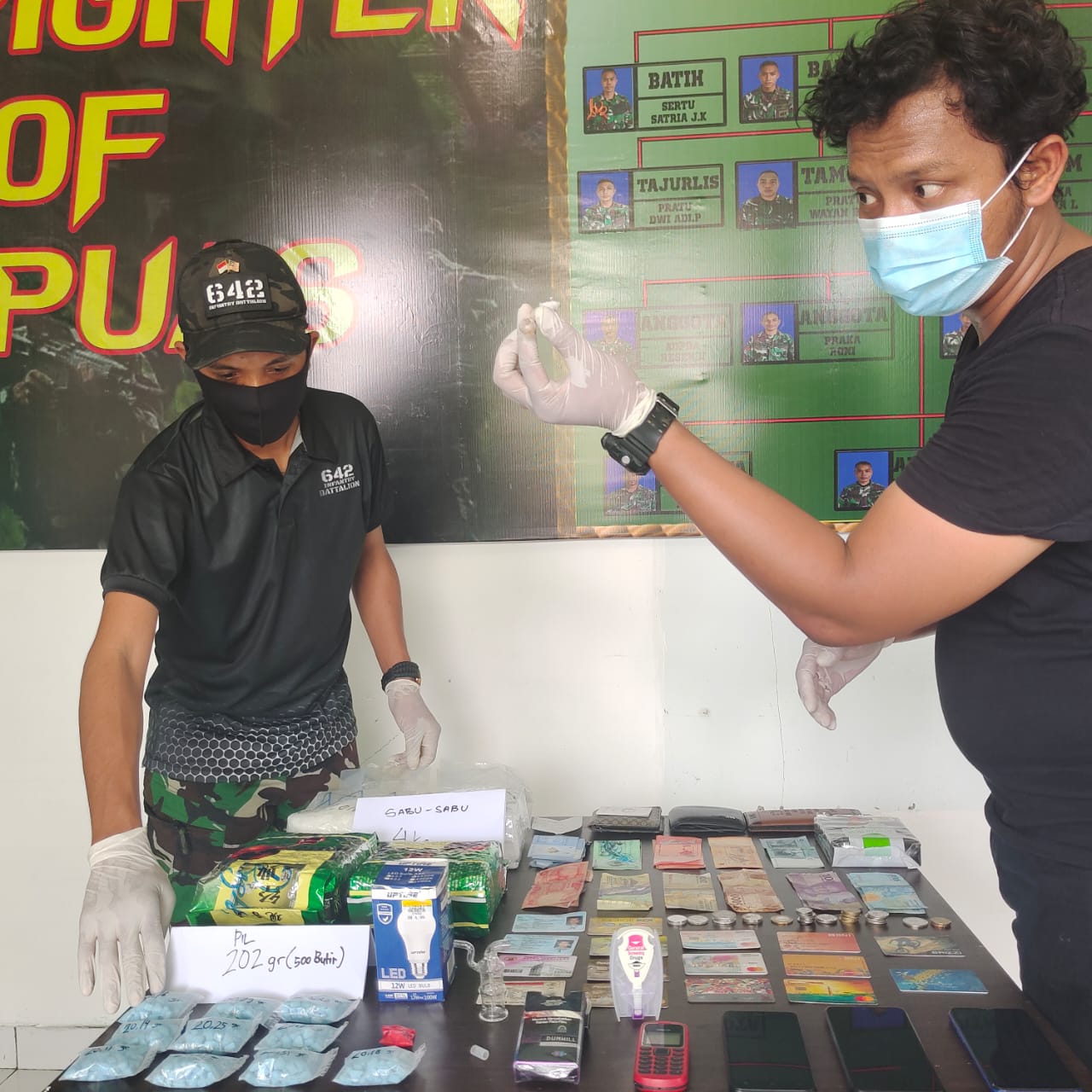 Dansatgas mengatakan pada hari Selasa, tanggal 22 Desember 2020, sekitar pukul 15.30 sore, Satgas Pamtas Yonif 642/Kps, Pos Koki Sajingan Terpadu berhasil menangkap terduga pelaku pembawa 4 paket Narkoba Golongan I jenis Sabu-sabu seberat 4,092 Kg serta 500 pil Ekstasi atas nama A usia 38 tahun, EY usia 32 tahun, dan HJK usia 32 tahun. Ketiganya ditangkap ketika Danpos Sajingan Terpadu, Lettu Inf Anshari memerintahkan angggota pos nya melaksanakan Kegiatan _Ambush_ yang dipimpin Bintara Pelatih (Batih) Pos Sajingan Terpadu, Sertu Satria bersama 6 orang anggota lainnya di Sektor Jalan Tikus Desa Sebunga, Kec. Sajingan Besar, Kab. Sambas.