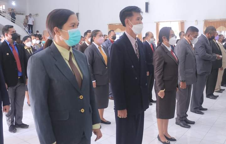 DETIKDATA, ATAMBUA – Guna mewujudkan Kabupaten Belu yang Sehat, Berkarakter dan Kompetitif perlu adanya satu sistem kerja yang satu frekuensi, satu irama dengan pimpinan serta sesuai dengan kebutuhan organisasi untuk dapat bekerja lebih cepat dan lebih baik. Berkaitan dengan hal tersebut, Bupati Belu, dr. Taolin Agustinus, Sp.PD-KGEH, FINASIM mengambil sumpah dan melantik 165 Pejabat Tinggi Pratama dan Pejabat Administrator Lingkup Pemkab Belu di Gedung Wanita Betelalenok Atambua, Senin (8/11/2021).