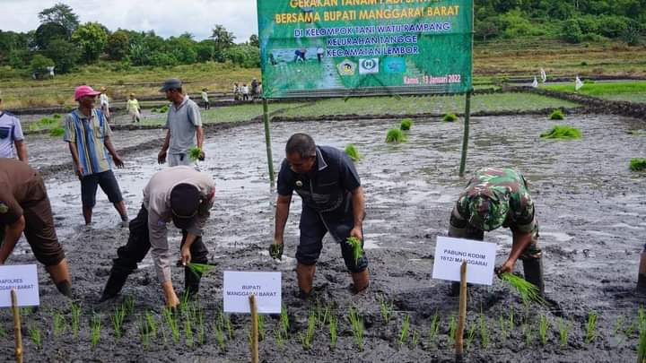“Hari ini, secara simbolis kita mulai tanam padi di kelompok Watu Rampang Kelurahan Tangge Kecamatan Lembor, Saya merasa senang jika petani dapat mengolah kembali lahan pertanian yang cukup lama terpaksa tidak digarap karena kesulitan pasokan air menyusul adanya pengerjaan perbaikan Bendungan dan sejumlah Irigasi” kata Bupati Edi saat membuka pelaksanaan Gerakan Tanam Simbolis Padi Sawah Musim Tanam (MT) I 2021/2022. Kegiatan ini merupakan intensifikasi padi Inbrida sawah di kelompok tani Watu Rampang Kecamatan Lembor,” Kamis (13/01)2022).