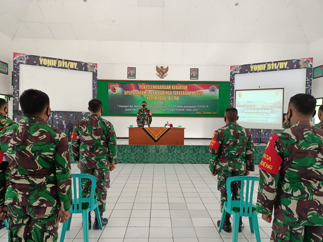 DETIKDATA, Blitar – Komandan Kodim 0808/Blitar Letkol Arh Dian Musriyanto, S.A.P memimpin Apel Danramil dan Babinsa Tersebar TA 2020 di Aula Graha Bhakti Yonif 511/DY Jln. Maluku Kelurahan Karangtengah Kecamatan Sananwetan Kota Blitar, Senin (07/12/2020).