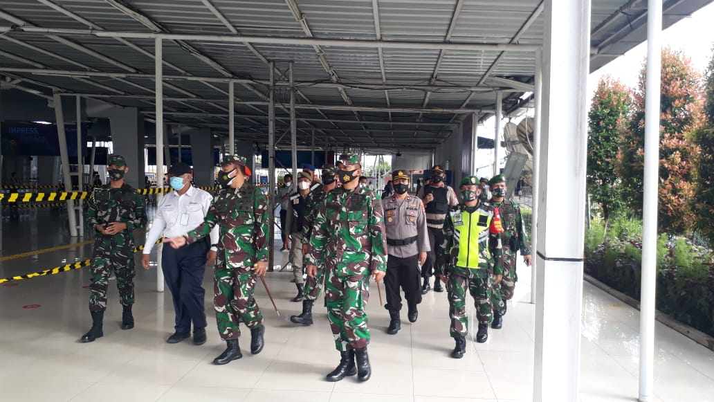 Kunjungan Danrem ke stasiun dalam rangka meninjau pengamanan penerapan protokol kesehatan di sarana Transportasi Stasiun KRL Kota Bogor.