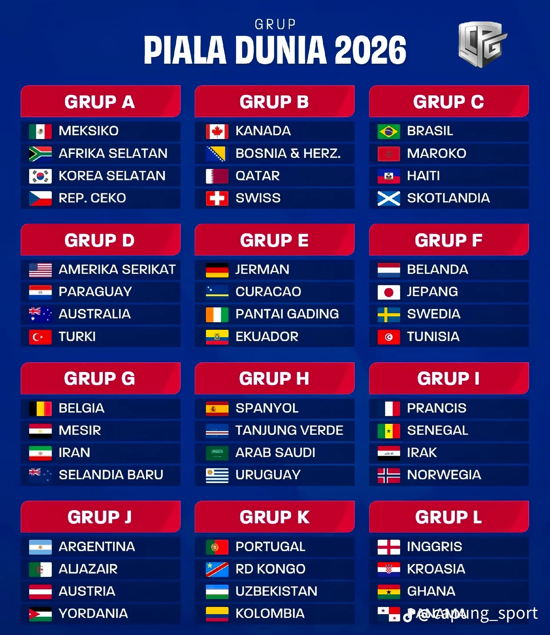 Hasil undian kali ini menghadirkan persaingan sengit, terutama di Grup C dan Grup I yang disebut-sebut sebagai “grup neraka”.