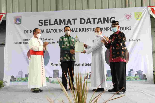 DETIKDATA, JAKARTA – Dalam rangka memastikan kesetaraan dan keadilan di Ibu Kota, Gubernur Provinsi DKI Jakarta, Anies Baswedan menyerahkan Izin Mendirikan Bangungan (IMB) sekaligus menghadiri proses peletakan batu pertama pembangunan Gereja Katolik Damai Kristus, yang berlokasi di Duri Selatan, Tambora, Jakarta Barat.