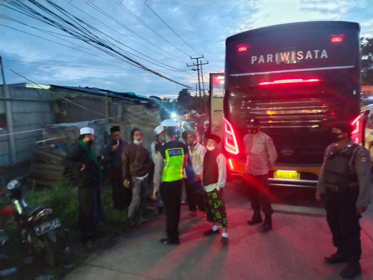 DETIKDATA, SERANG – Personel Polres Serang menemukan 1 Bus Pariwisata yang berisi massa dan para simpatisan FPI yang hendak berangkat ke Jakarta.
