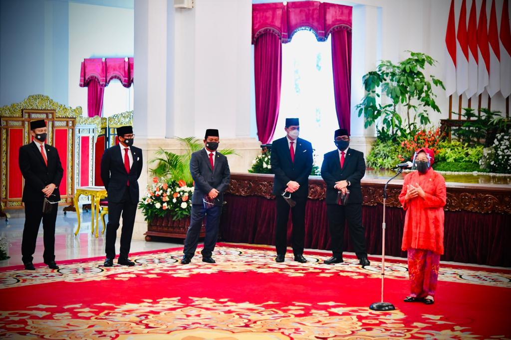 Untuk diketahui, keenam anggota baru Kabinet Indonesia Maju tersebut dilantik berdasarkan Keputusan Presiden Republik Indonesia Nomor 133/P Tahun 2020 tentang Pengisian dan Penggantian Beberapa Menteri Negara Kabinet Indonesia Maju Periode Tahun 2019-2024. Setelah pelantikan ini mereka akan bersegera untuk menjalankan amanah Presiden dan Wakil Presiden untuk dapat menjalankan tugas masing-masing dengan baik dan membantu pemulihan negara dari dampak pandemi Covid-19. (DD/R).