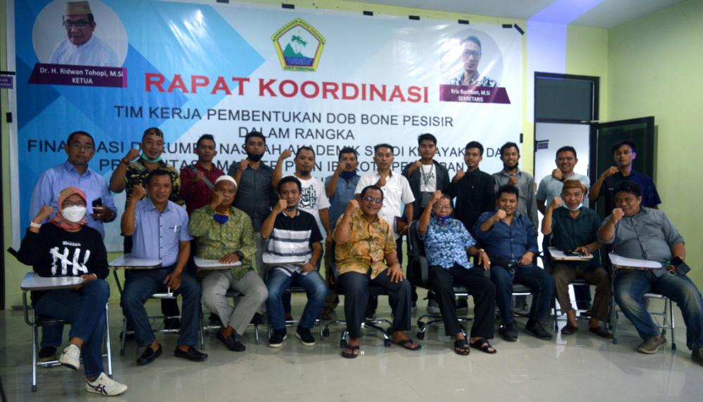 Demikian diutarakan Ketua Komite Pembentukan Kabupaten Bone Pesisir, Dr. Ridwan Tohopi pada rakor tim kerja Pembentukan DOB Bone Pesisir dalam rangka finalisasi dokumen naskah akademik studi kelayakan pembentukan Kabupaten Bone Pesisir.