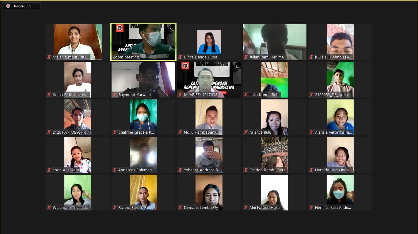 DETIKDATA, WAINGAPU – Senat Mahasiswa Fakultas Sains dan Teknologi (SEMA FST) bekerja sama dengan Senat Mahasiswa Fakultas Ilmu Sosial (SEMA FIS) Universitas Kristen Wira Wacana (UNKRISWINA) Sumba menyelesaikan penyelenggaraan Kegiatan Latihan Menengah Kepemimpinan Mahasiswa (LMKM) via Aplikasi Zoom. Sabtu (31/07/2021)
