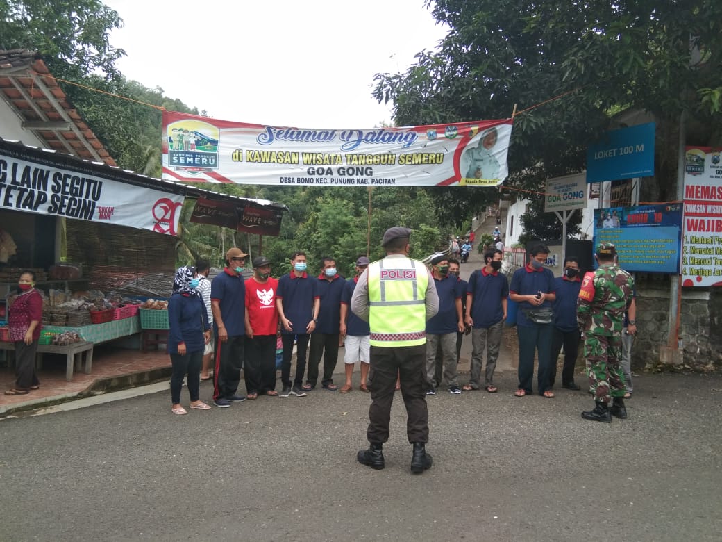Babinsa Koramil 0801/10 Punung Sertu Wahyu Tri menjelaskan terkait dengan wabah virus corona yang saat ini tengah menjadi perhatian banyak orang, termasuk di Indonesia dan lebih khususnya di Kabupaten Pacitan, menjelang liburan hari minggu TNI Polri bersinergi melakukan Penegakan Disiplin Protokol Kesehatan ditempat wisata yang ada di Kabupaten Pacitan khususnya di wisata Goa Gong.