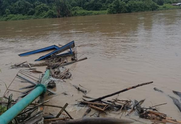 Dijelaskan, Intake Unit Jelarai roboh akibat terjangan derasnya arus Sungai Selor serta hantaman batang kayu yang hanyut akibat banjir.
