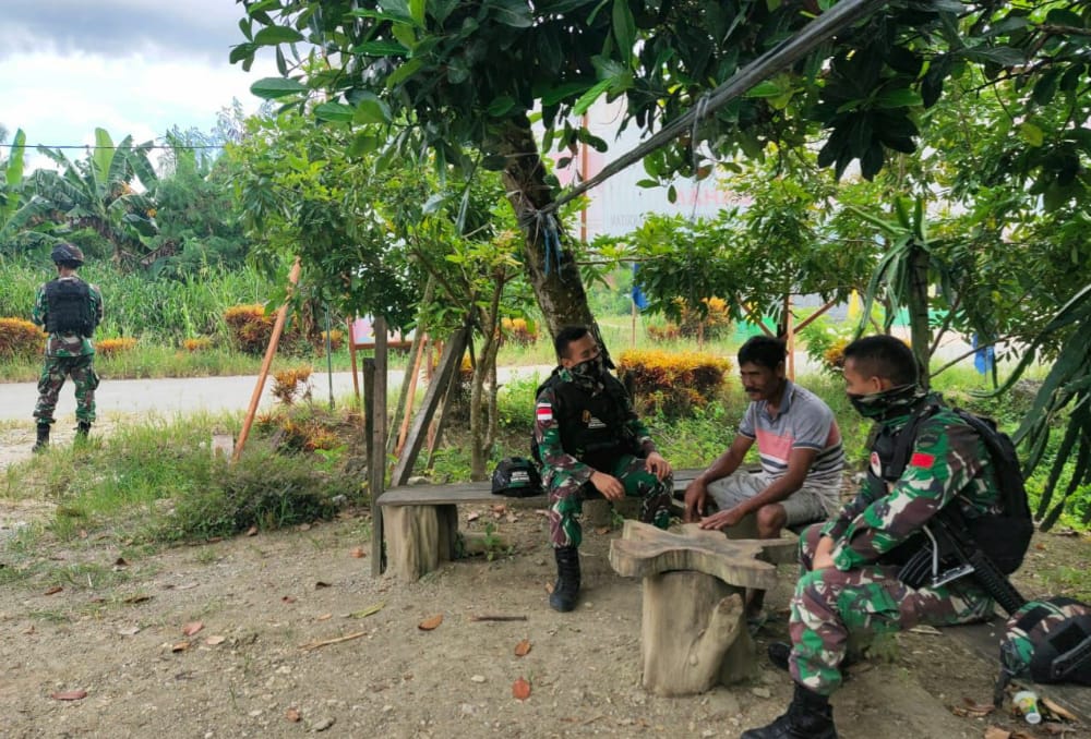 DETIKDATA, Keerom – Sebagai sarana mempererat tali silaturahmi untuk menyabut bulan Desember yang penuh sukacita sehingga kita sebagai umat manusia saling berbagi kasih, karena sejatinya kasih itu adalah rasa damai yang memberikan kenyamanan bagi sesama manusia, tak ada permusuhan diantara sesama, kali ini Satgas Pamtas Yonif Raider 100/PS Pos Arso 13 dipimpin oleh Serda Boang Manalu selaku Danru Pos Arso 13 melaksanakan anjangsana ke rumah Bapak Sutadin (48) Selaku Ketua RT 10 dimana perlu memastikan sekaligus koordinasi tentang situasi keamanan diwilayah binaan di Kampung Naramben, Distrik Skanto, Kabupaten Keerom, Provinsi Papua. Rabu,(02/12/2020).