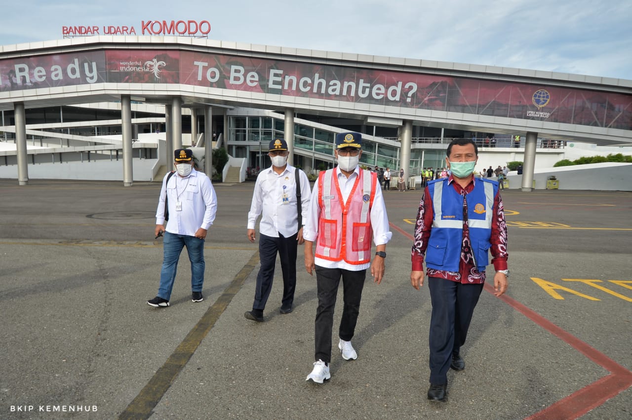 Menhub mengatakan, saat ini tengah dilakukan sejumlah pengembangan di Bandara Komodo, baik di sisi darat yakni perluasan terminal penumpang, maupun di sisi udara seperti: perpanjangan landas pacu (runway) dari sepanjang 2.250 meter menjadi 2.650 meter, apron, taxiway, drainase, pagar bandara, dan fasilitas lainnya. Ditargetkan pengembangan tersebut akan selesai pada Maret 2022.