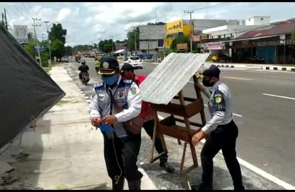 DETIKDATA, PALANGKARAYA – Dinas Perhubungan Kota Palangka Raya melakukan penertiban para pedagang dan pemilik kios yang menggunakan trotoar sebagai sarana menggelar usahanya. Tepatnya di Jalan Tjilik Riwut Km 4 Palangka Raya.