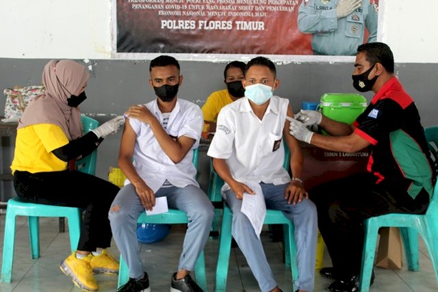 Kapolres Flores Timur AKBP I Gusti Putu Suka Arsa, S.I.K melalui Kasi Humas IPDA Anwar Sanusi mengatakan, Progam vaksinasi massal dengan sasaran pelajar sebagai upaya untuk menekan penyebaran covid 19 dengan tetap memperhatikan protokol kesehatan.