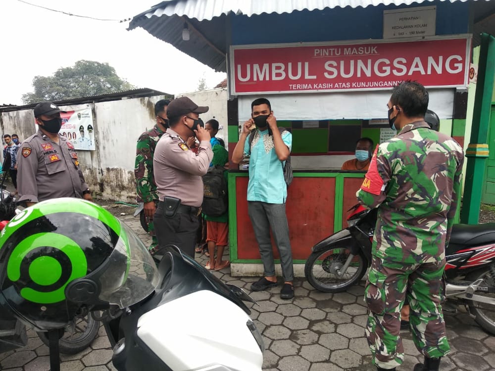 Pastikan tempat wisata tetap terapkan protokol kesehatan guna cegah penyebaran Covid 19,personil Gabungan TNI POLRI Kecamatan Banyudono lakukan penertiban penerapan protokol kesehatan di tempat wisata Umbul Sungsang, dalam penertiban tersebut,personil melakukan pengecekan guna memastikan protokol kesehatan tetap dilakukan sesuai prosedur,dimulai dari kelengkapan pegawai serta sarana dan prasarana penunjang lain nya.