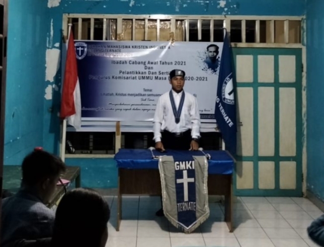 DETIKDATA, TERNATE – Badan Pengurus Cabang Gerakan Mahasiswa Kristen Indonesia (BPC GMKI) Cabang Ternate melantik pengurus komisariat UMMU periode 2020/2021 di Student Center GMKI Ternate. Jumat (22/01/21).