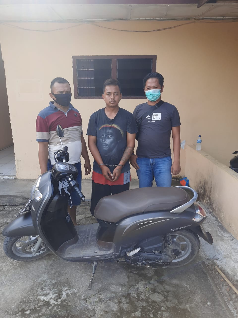 Setelah dilakukan penyelidikan, hari Jumat (20/11/2020 ) pagi sekira pukul 08.00 Wib Kanit Reskrim IPDA Frizsel G Sitohang, SH menerima informasi dari masyarakat melalui Aplikasi yang diterusan Operator berhasil meringkus Pelaku Ardian dan barang bukti 1 unit sepedamotor merek Scoopy warna abu-abu Dov BK 3659 TBJ dirumahnya.
