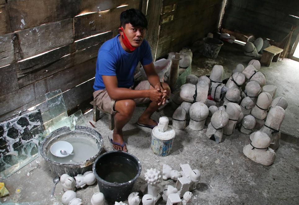 “Saya mulai membuat kerajinan celengan berbahan gypsum ini sekitar tiga tahun lalu,” kata dia, Minggu (31/1/2021).