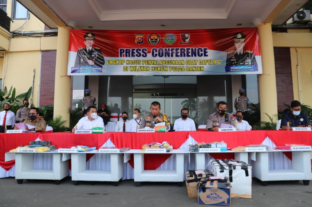 Kapolda Banten Irjen Pol Drs. Fiandar menyampaikan bahwa Ditresnarkoba Polda Banten berhasil ungkap sebanyak 108 kasus penyalahgunaan obat-obatan dan menangkap 126 pengedar di wilayah hukum Polda Banten dengan jumlah barang bukti 370.430 butir berbagai obat terlarang daftar G seperti Hexymer dan Tramadol diamankan dari para tersangka.