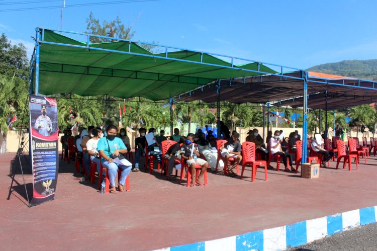 Kapolres Alor AKBP Agustinus Chrismast , S.I.K bersama Forkofinda Kabupaten Alor pada gelaran gerai vaksinasi Presisi meninjau langsung proses Vaksinasi yang berlangsung di Polsek Alor timur dan Polsek Alor selatan yang terletak di wilayah perbatasan RI – RDTL hal ini di lakukan untuk memastikan bahwa masyarakat yg berada di wilayah perbatasan negara juga terlayani vaksin melalui gerai vaksin Presisi Polres Alor.