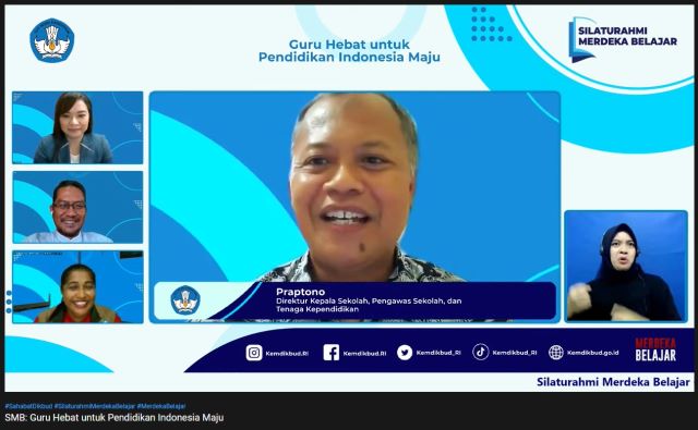 Direktur Kepala Sekolah, Pengawas Sekolah, dan Tenaga Kependidikan, Praptono, menegaskan, Merdeka Belajar bertujuan mendukung para guru makin mandiri dan memerdekakan para murid.