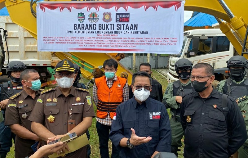Dalam penyerahan tersangka ini, KLHK juga menyertakan barang bukti berupa tiga eksavator dan tiga truk tanah (dump truck).
