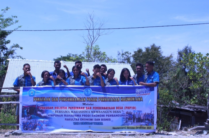 DETIKDATA, KEFAMENANU – Sah Tim Program Holistik Pembinaan dan Pemberdayaan Desa (PHP2D) Himpunan Mahasiswa Program Studi (HMP) Ekonomi Pembangunan Fakultas Ekonomi dan Bisnis (FEB) Universitas Negeri Timor (UNIMOR) Turun ke Lokasi Kegiatan Pegabdian tepatnya di Pasar Lintas Batas Negara RI – RDTL Desa Haumeni Ana, Kecamatan Bikomi Nilulat, Kabupaten Timor Tengah Utara (TTU), NTT (08/09/2021).