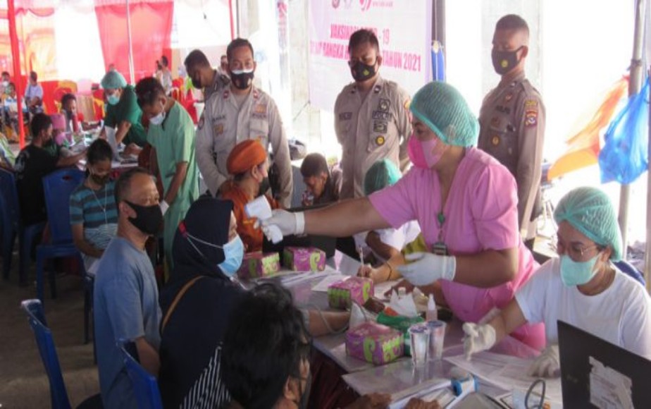 Dipantau oleh media ini, dari pagi hari hingga siang pukul 11.45 Wita sudah 200 lebih orang yang mendapat pelayanan vaksinasi.