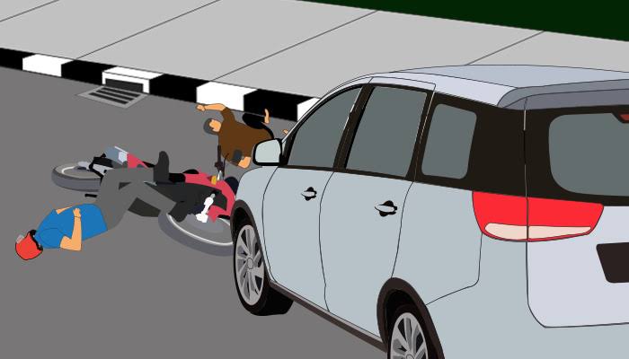 Kecelakaan terjadi saat pengemudi mobil Daihatzu Taruna datang dari arah barat menuju ke timur dan hendak berbelok kearah selatan, namun di saat bersamaan datang Pengendara Sepeda Motor Yamaha Vixion dari arah yang bersamaan kemudian menabrak bagian samping kanan mobil tersebut.