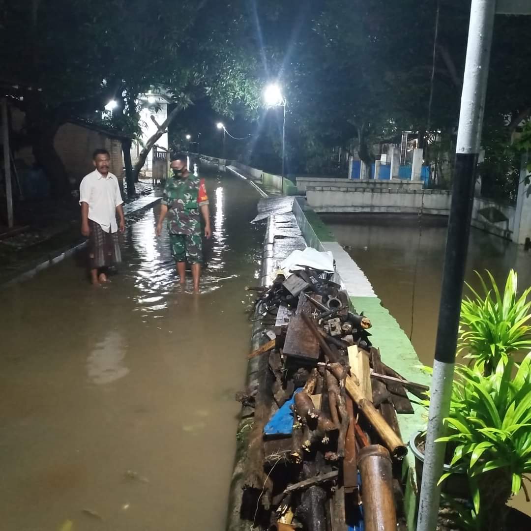 Babinsa Bersama Warga Mengecek Lokasi Pemukiman Yang Terendam Banjir