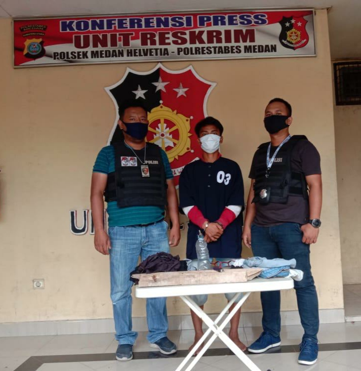 Berdasarkan Laporan Polisi Pelapor : LP/525/XI/2020/SU/Polrestabes Medan/Polsek Medan Helvetia. Rabu tanggal 11/11/2020 dan informasi yang didapat dan pengembangan dilapangan, Tekab Polsek Medan Helvetia dapat mengamankan Pelaku di jalan.Listrik No.10 kelurahan Petisah Tengah Medan Baru sekira pukul 23.30 wib hari Rabu 11/11/2020 ditempat persembunyiannya.