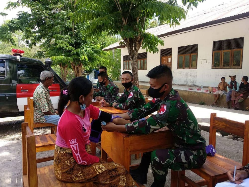 Lanjut Danpos mengungkapkan bahwa selain memberikan pelayanan kesehatan, Dokter Satgas Lettu (Ckm) Rukmana Wijayanto bersama personel Pos Maubusa juga melaksanakan penyuluhan tentang covid-19 kepada masyarakat.